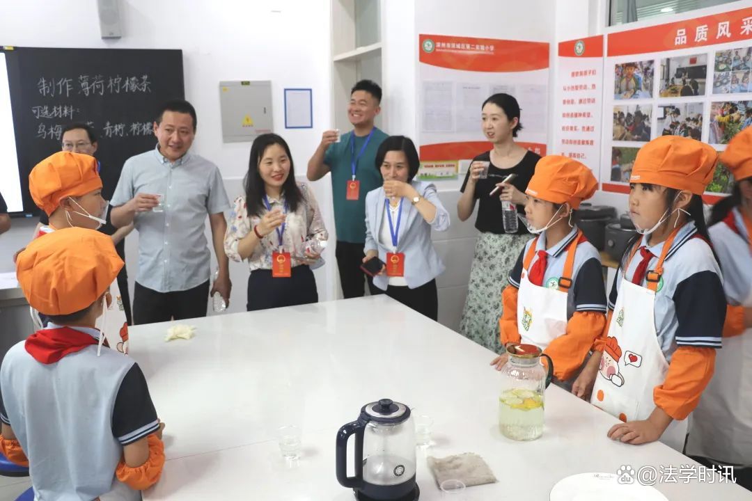 食育工坊飘药香:在食育工坊,代表们饶有兴致地观摩了学生现场制作薄荷茶的过程。清新的药香弥漫中,孩子们将所学知识化为实践操作,生动展现了中医药融入日常生活的智慧。